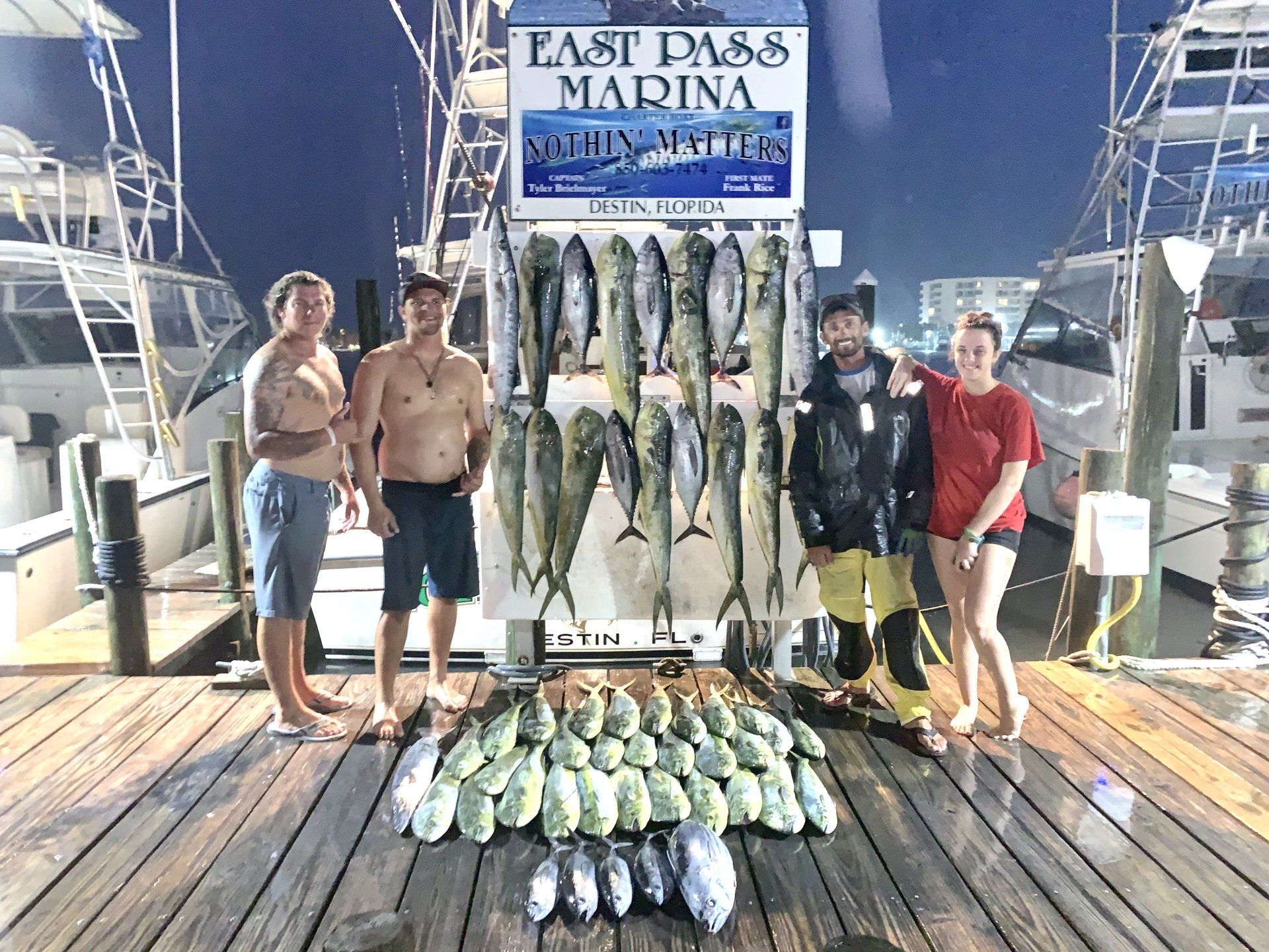 NOTHIN’ MATTERS FISHING CHARTERS offers fishing experiences for everyone to enjoy. Trolling takes place offshore in the Gulf of Mexico off the Destin Coast. It involves dragging multiple baited lines at the same time through the water while waiting for a strike. This method is used for catching large offshore or open water species of fish off oil rigs, reefs, and wrecks. We utilize the best tackle, gear, and bait to catch tuna, wahoo, marlin, mahi mahi, and sailfish etc. To book a charter today, click "BOOK NOW" or call (850) 603-7474.
